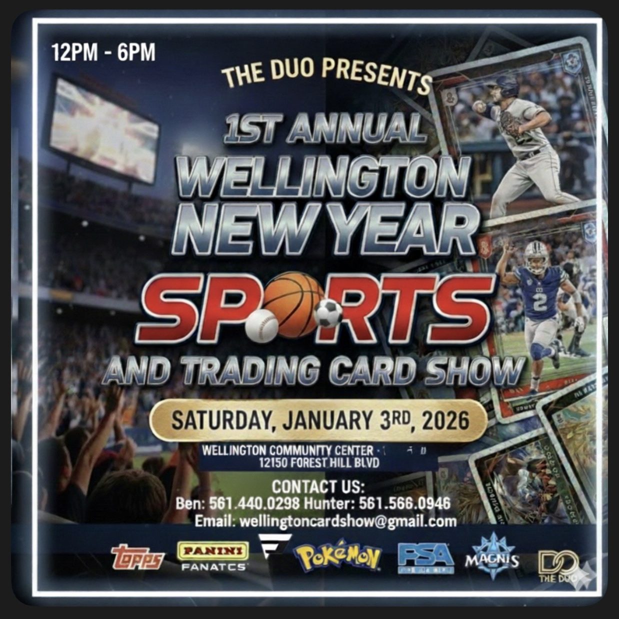 Join us at the Wellington Community Center on Saturday January 3rd, 2026 from 12pm - 6pm for an exciting day dedicated to trading cards!